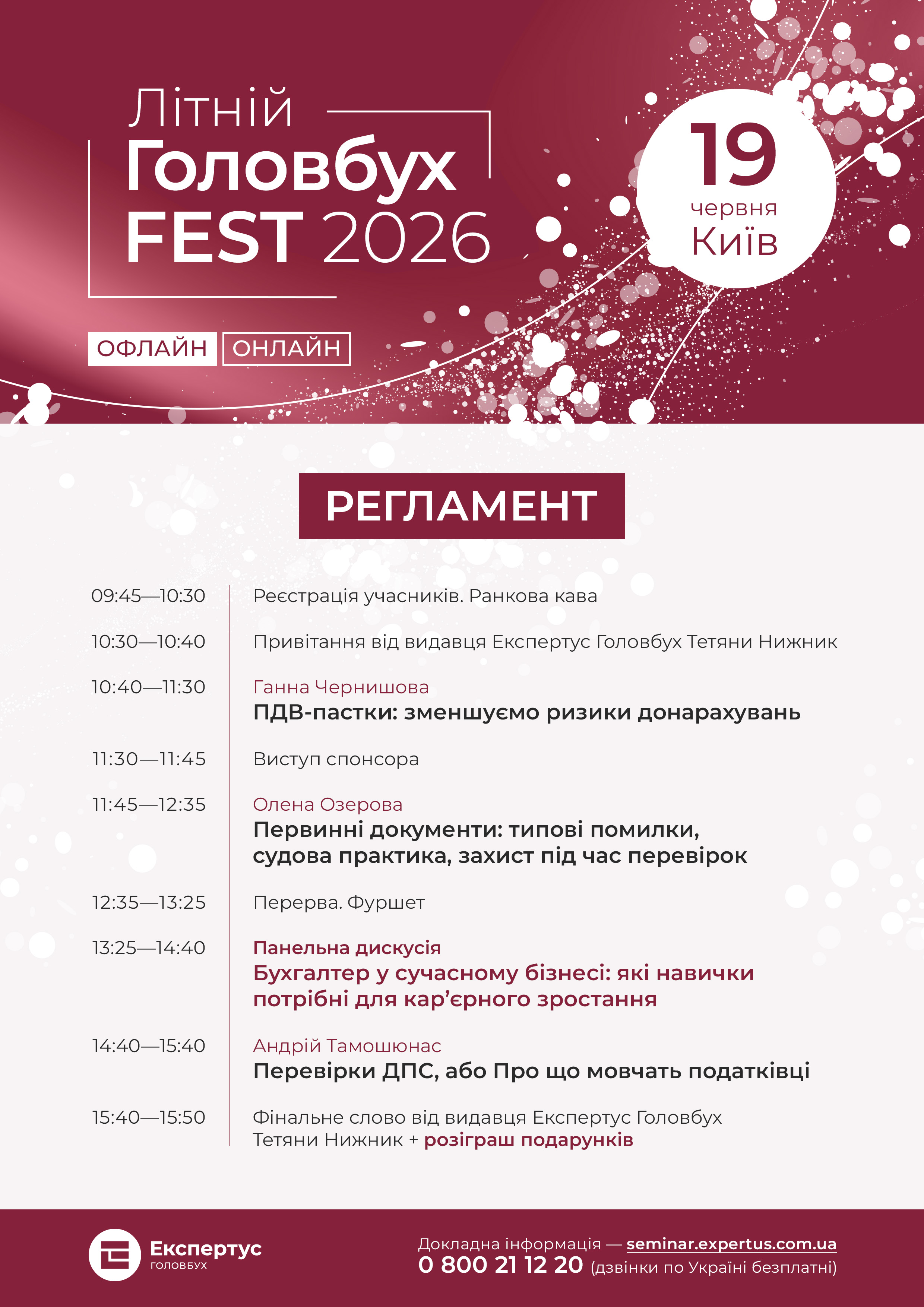 Редакція Експертус Головбух запрошує вас на вже традиційну головну подію літа — Літній ГоловбухFest-2026. Почніть літо правильно — проведіть день в колі професіоналів та однодумців
